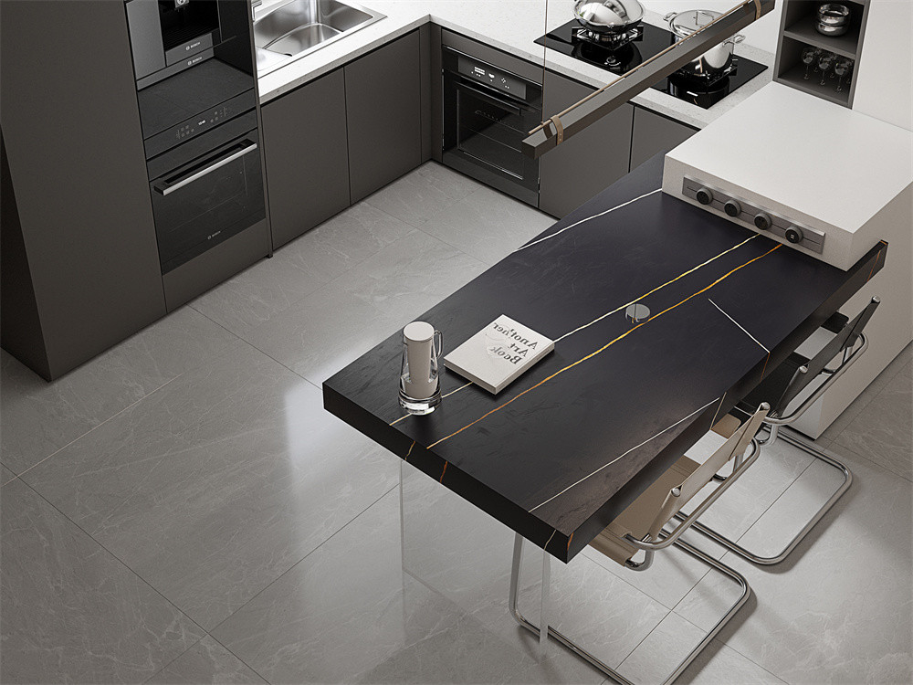 Υποθέτοντας ότι έχετε δουλέψει σκληρά όλη μέρα, όταν επιστρέψετε σπίτι και ανοίγετε την πόρτα του μπάνιου, θα διαπιστώσετε ότι το πάτωμα και ο τοίχος του μπάνιου είναι φτιαγμένα από όμορφες πέτρινες πλάκες.Η απλή υφή της ματ σιντερωμένης πέτρας και ο μαύρος τόνος προσθέτουν μια πολυτελή ατμόσφαιρα στο μπάνιοΌταν πλένετε τα μαλλιά σας, θα συνειδητοποιήσετε ότι η διάθεσή σας γίνεται χαρούμενη επειδή μπορείτε να αφήσεις το άγχος και να ξεχάσεις τα προβλήματά σας στο καλό περιβάλλον που δημιουργείται από την ανθεκτική σιντερωμένη πέτρα.Αξίζει να αναφερθεί ότι η διακόσμηση του μπάνιου με μεγάλες πλάκες μπορεί να απολαύσει μια όμορφη ζωή.